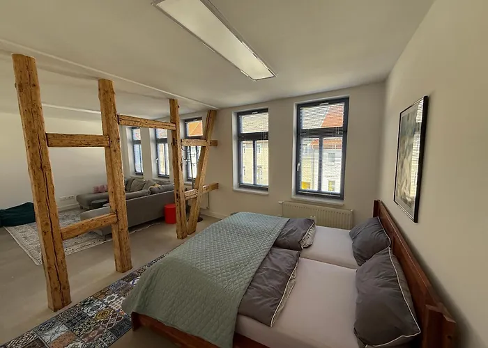 The spacious Premium Wohnung Im Zentrum Mit 2 Schlafzimmern Leinefelde-Worbis offers proximity to such tourist attractions as Friedensplatz Worbis, situated approximately 5 minutes' walk away.